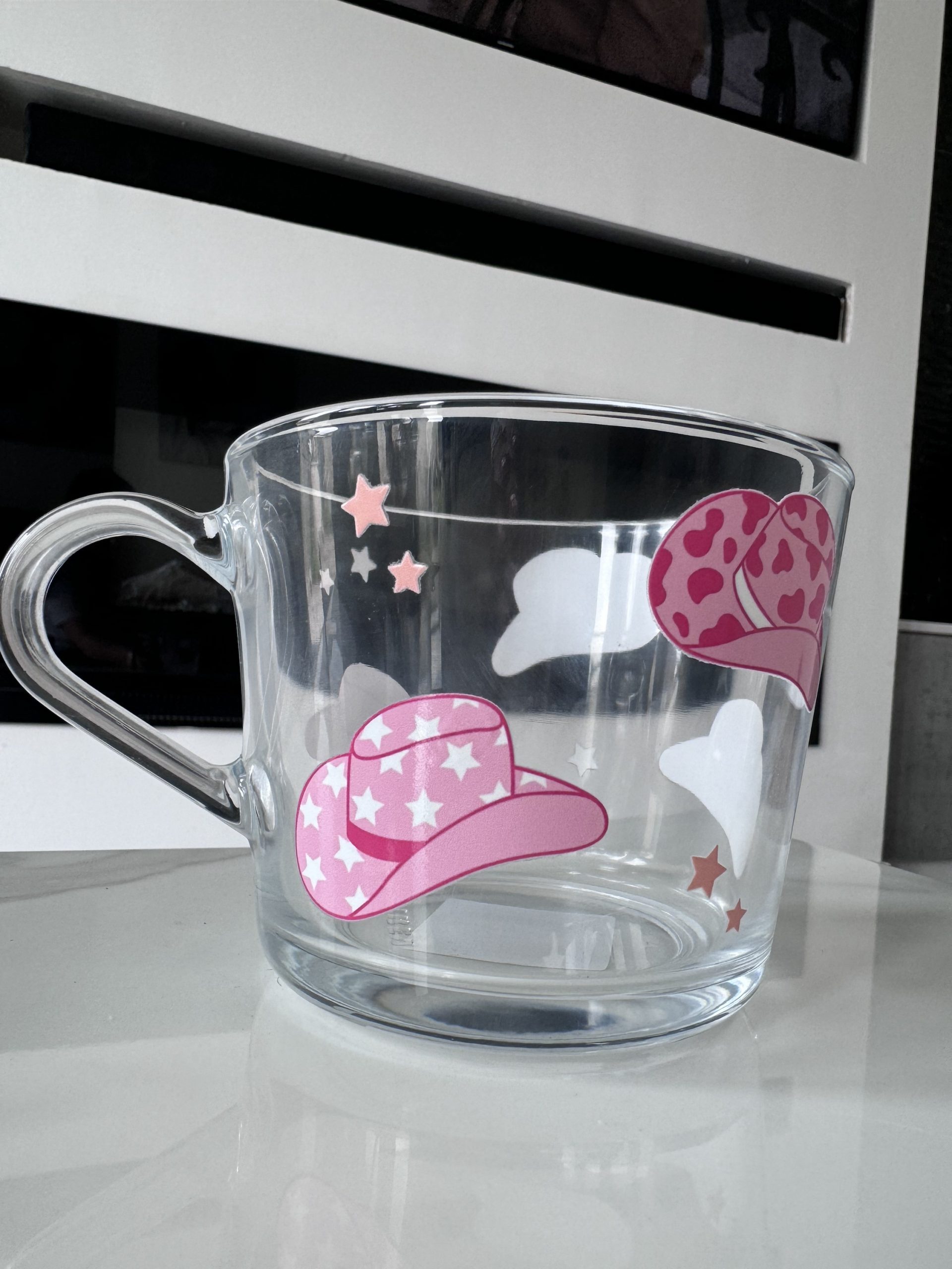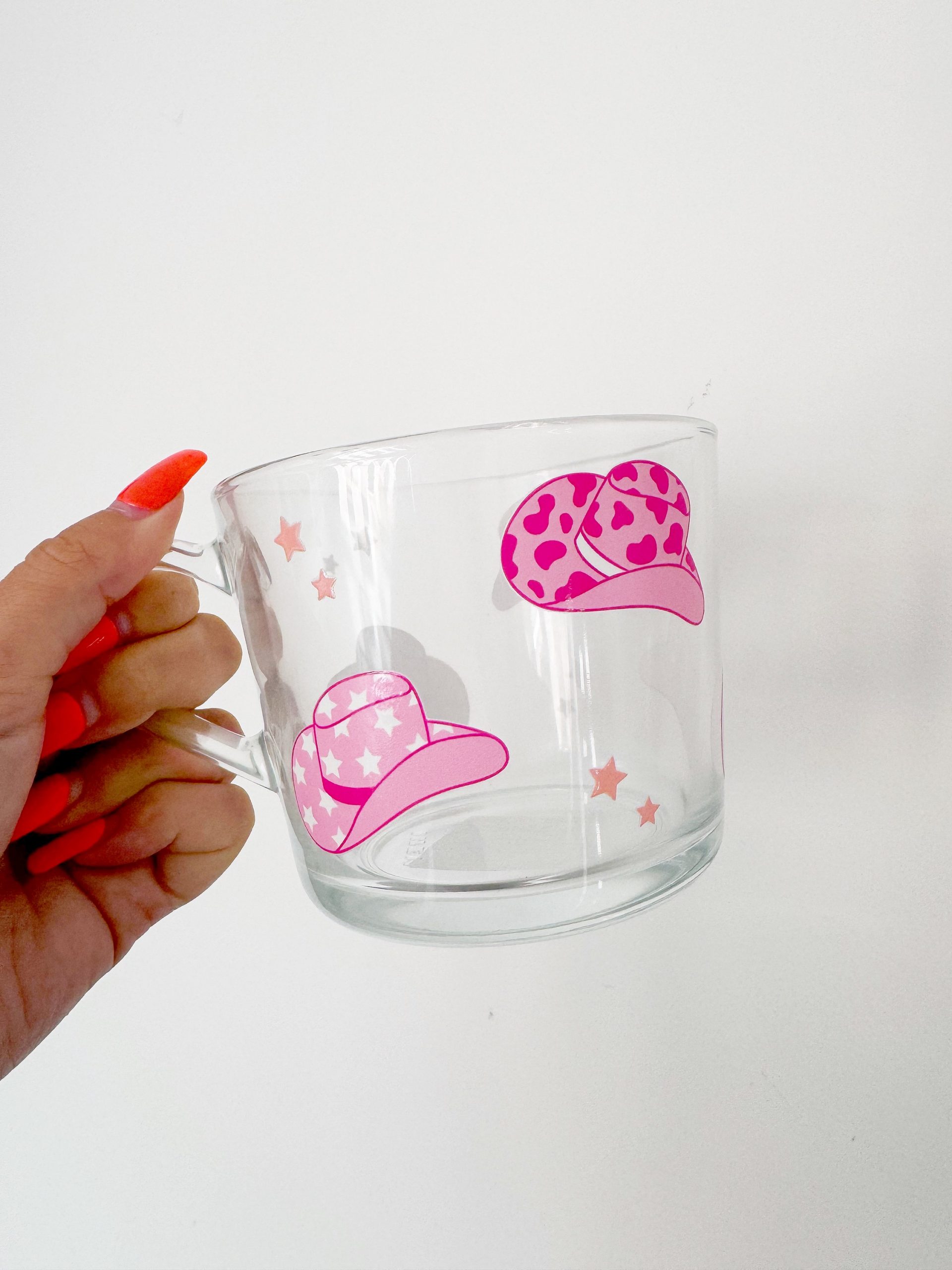 Add a touch of cowgirl flair to your drinkware with our Cowgirl-Inspired Glass Mug featuring Pink Cowboy Hats! Perfect for daily use or as a unique gift for the cowgirl at heart, this glass mug adds a bit of western charm to your kitchen or office.
