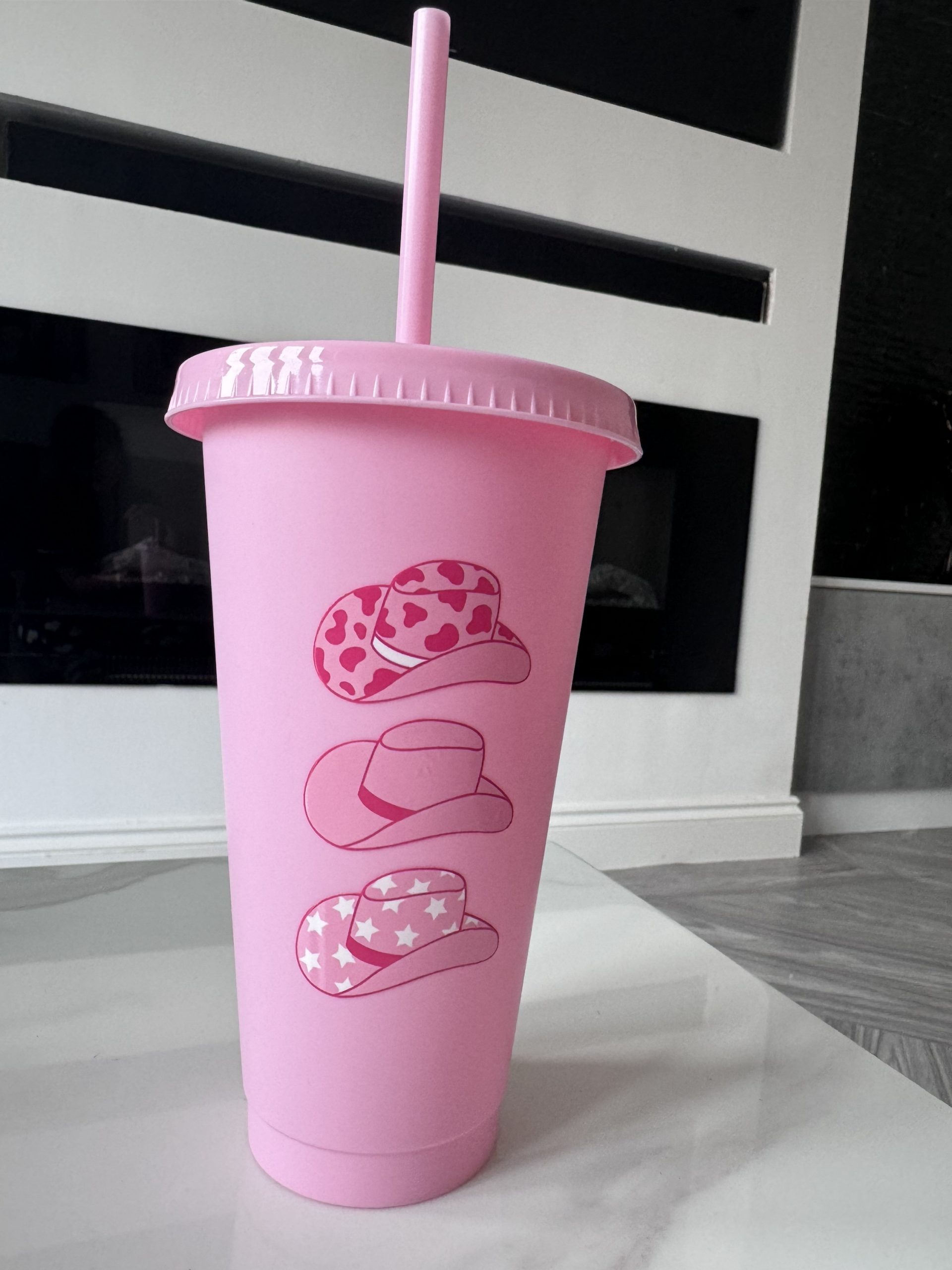 Sip in style with our Pink Tumbler Cup with Cowgirl Hat Design! This fun and vibrant tumbler is perfect for those who want to add a touch of western charm to their everyday hydration.